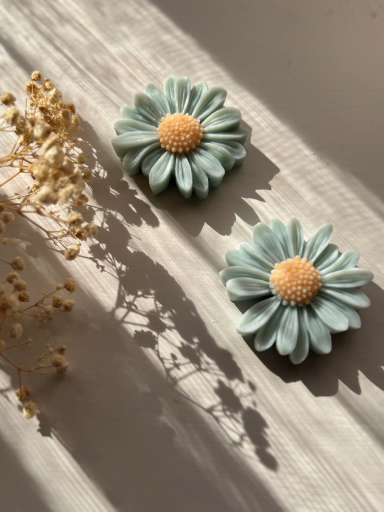 A cheerful daisy-shaped candle, symbolizing joy and purity.