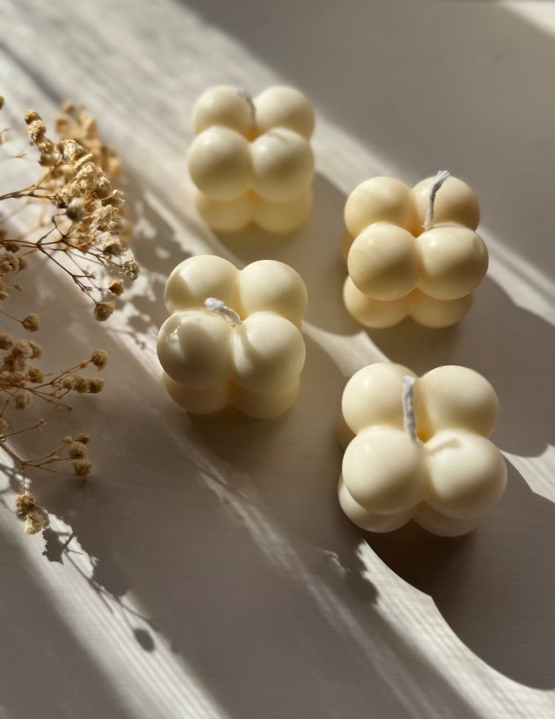 A modern and elegant mini bubble candle, perfect for wedding and christening favors. Handmade with care and designed to suit any celebration.