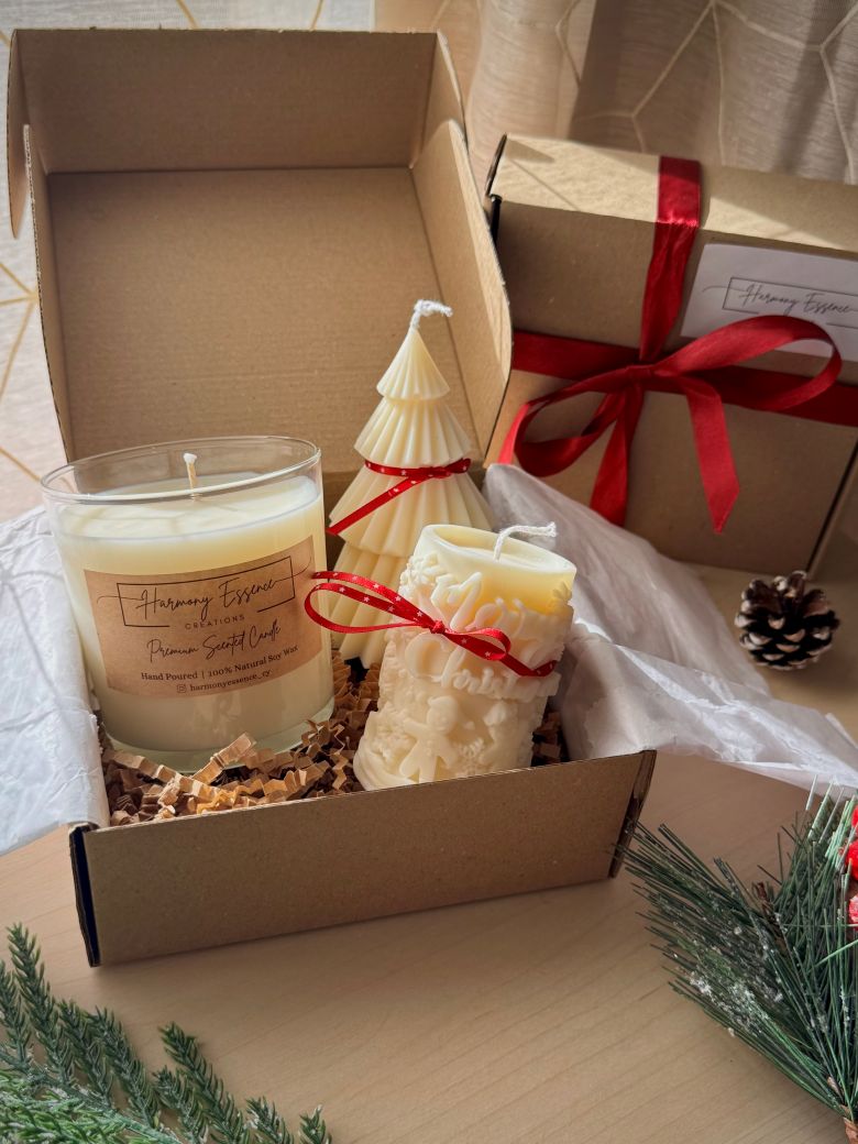 • Christmas Tree Scented Candle: Inspired by the charm of a Christmas tree, this hand-poured soy wax candle brings both the look and scent of the season into your home.